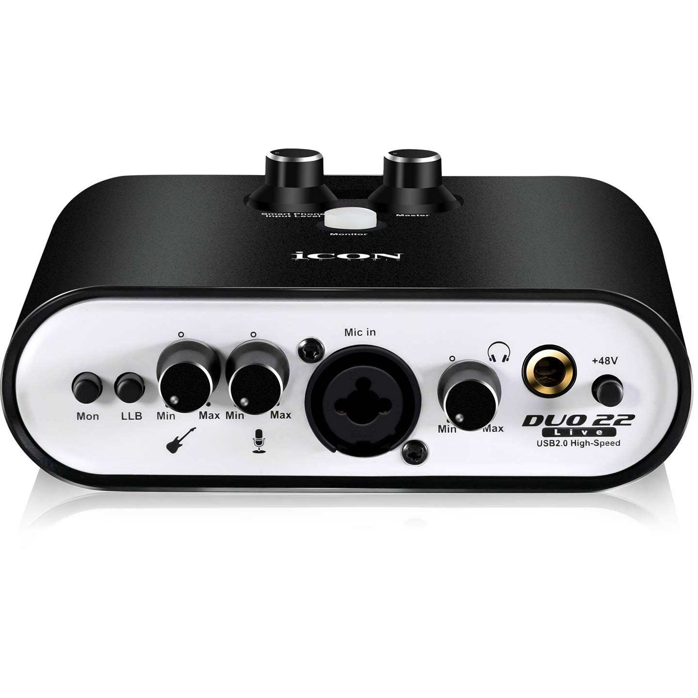 Icon Pro Audio Duo22 Live audio interfaceCreate the perfect recordings on your computer or mobile device with high-end analog-to-digital converters. High dynamic range ensures your performances are captured in the greatest of detail. Hook up a condenser or dynamic microphone, and a guitar or bass to lay down your ideas.