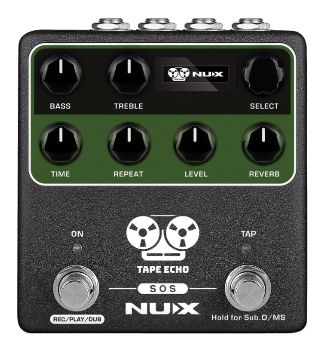 NUX TAPE ECHO is a tribute to the Japanese-made Space Echo from 1974. Analogue tape echo devices record incoming audio to a loop of magnetic tape, then replays the continuous loop over the playback head before it is erased again by new incoming audio.