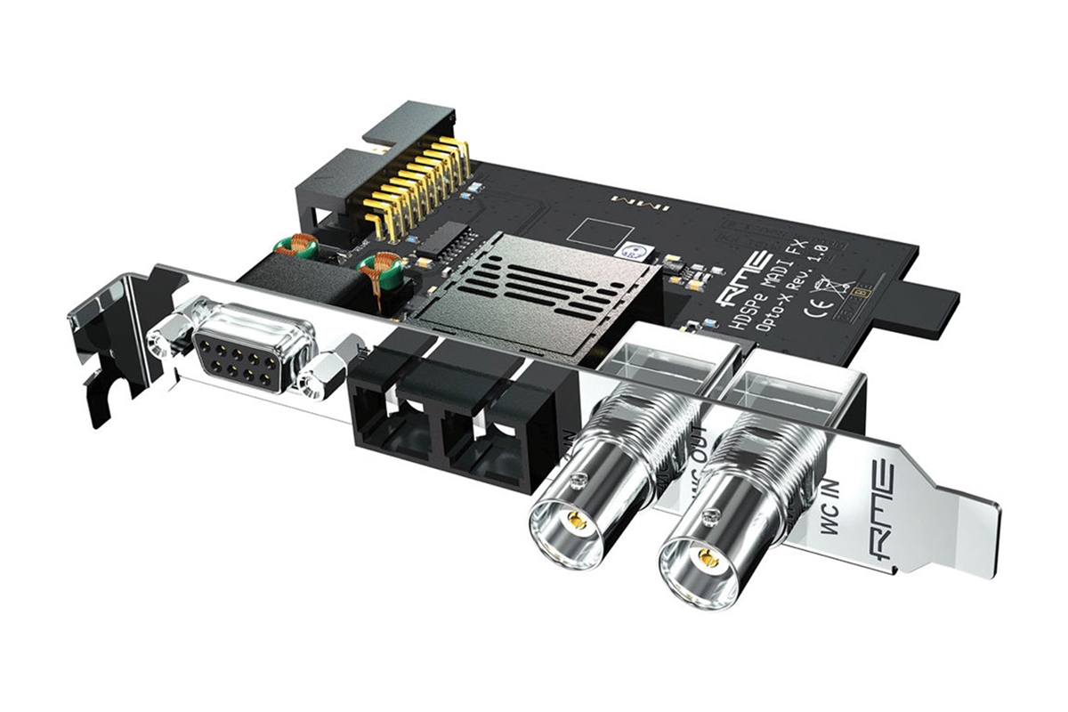 he RME OPTO-X Extension Board works with the HDSPe MADI FX Triple MADI Card with full functionality. This extension board adds more I/O ports to the internal cards of the HDSPe series. It comes with a Word Clock I/O and a D-sub connector for MIDI and AES I/O. The standard coaxial MADI I/O in this extension board is replaced by an optical MADI I/O. The MADI FX offers 3 optical MADI I/Os when used with the OPTO-X Extension Board.