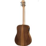The dreadnought is an all-rounder body shape that suits both strumming and fingerpicking alike; while the 3/4 size means you sacrifice volume and punchiness you still get that versatility. The back and sides are made from laminated woods which allows them to bend an arch in the back for increased strength that’ll hold up well to travelling. The top, however, is made from solid Sitka spruce, the industry standard for acoustic guitar tops. Spruce provides a balanced tone with a broad dynamic range making it a versatile tonewood suited to a wide range of styles.