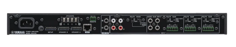 - Supporting Lo-Z (120W x2ch @4Ω or 100W x2ch @3Ω/8Ω) and Hi-Z (120W x2ch or 200W x1ch, 70V/100V) speaker systems